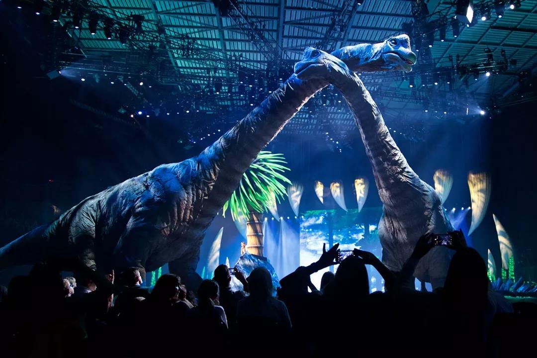 《与龙同行》参照英国BBC获奖无数、风靡全球20年的同名电视特辑,把消失于地球2亿年前的恐龙,重新活现在观众眼前。将情景、舞台、音乐、电影、演出、展示融为一体的“巨型活恐龙Show”,在澳洲、北美、英国和欧洲等地巡演就掀起热潮,跨250个城市,吸引了7亿名观众入场,创造了5亿多美元的惊人票房,创造出场场爆满的记录,不管是大人还是小孩都被演出的现场效果深深震撼。
